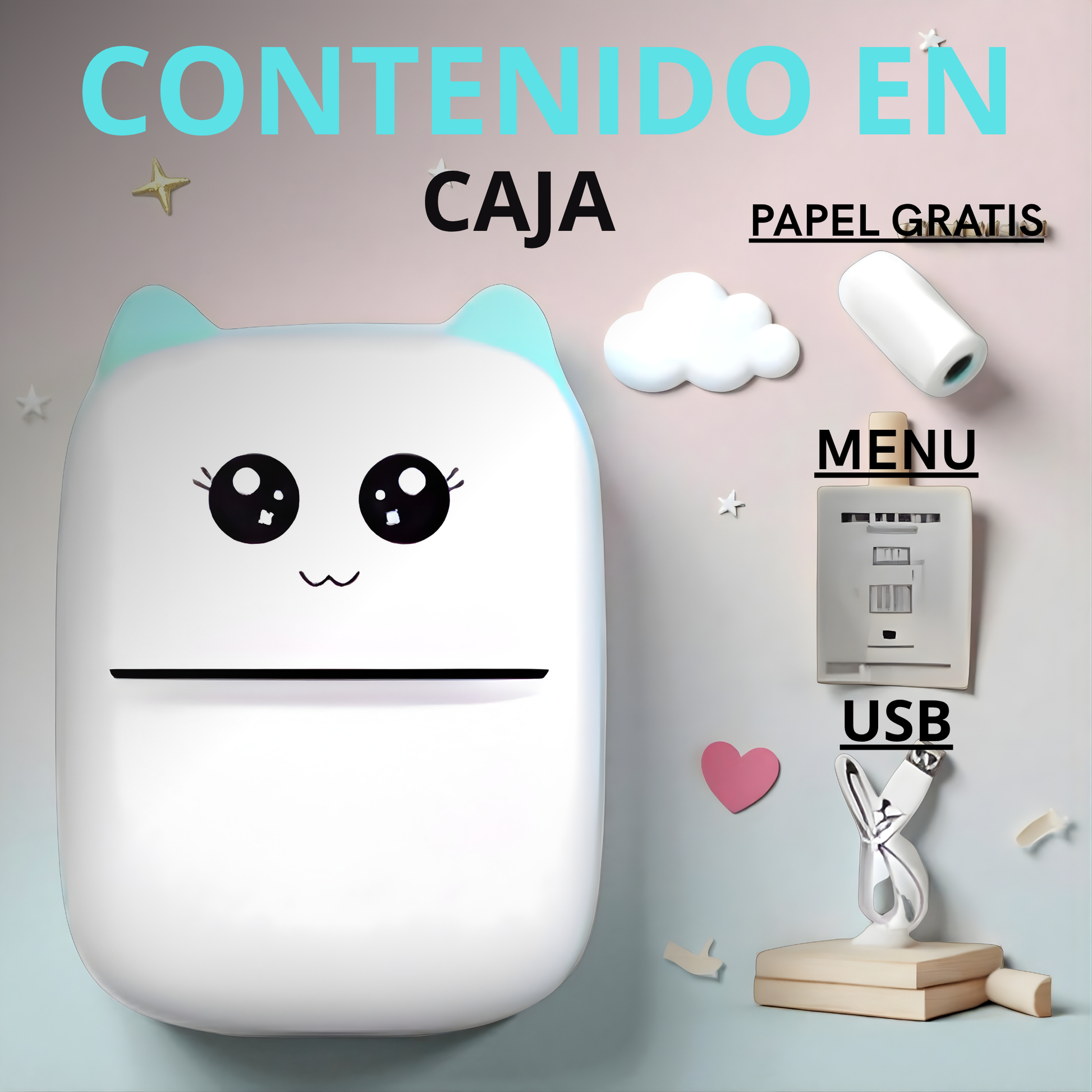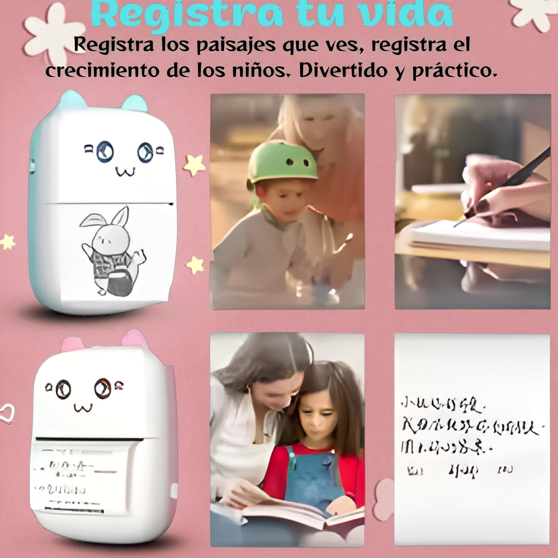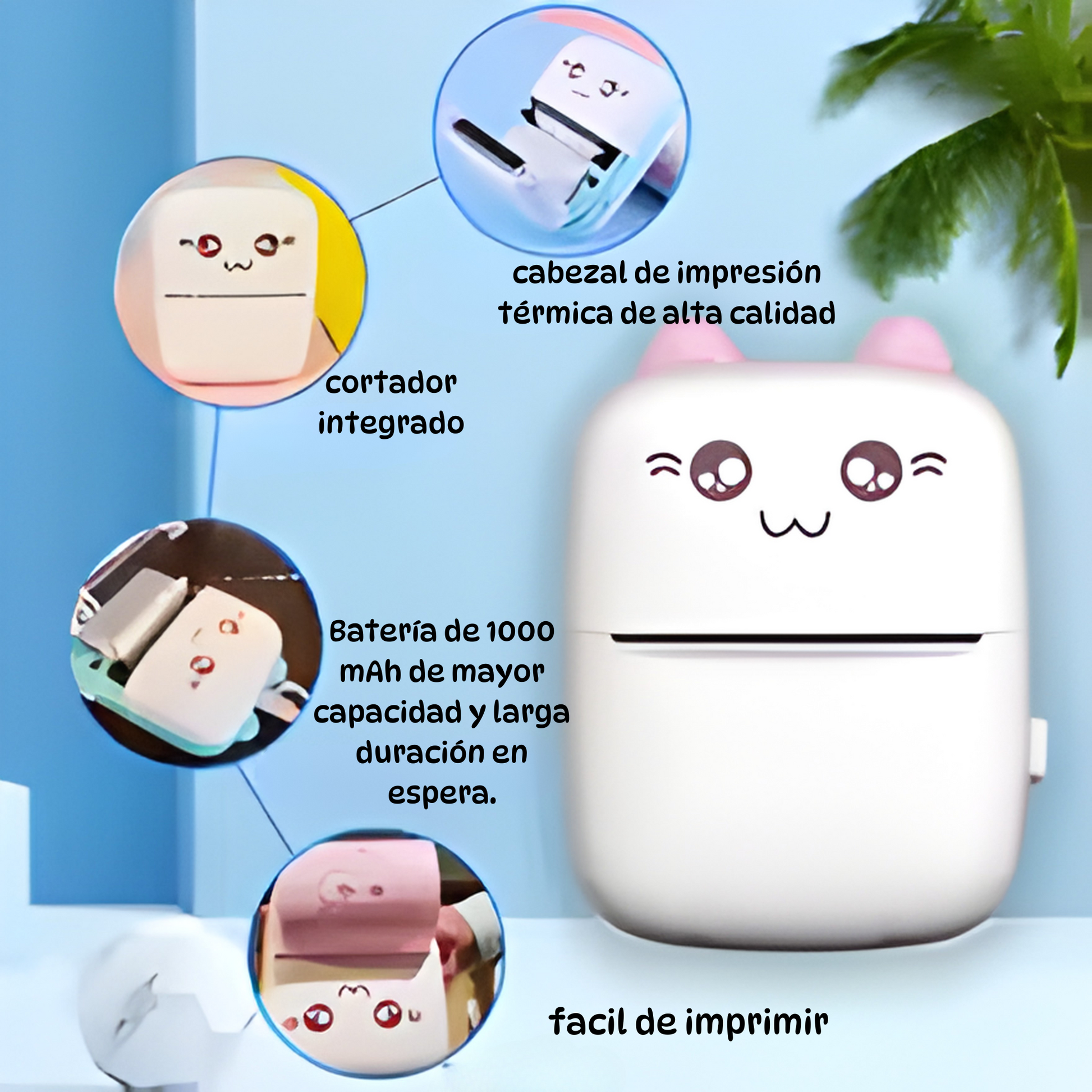 Nuestra mini impresora portátil con forma de gato transforma tus ideas digitales en recuerdos reales, sin tinta y al instante. Perfecta para estudiantes, artistas y amantes de la organización.