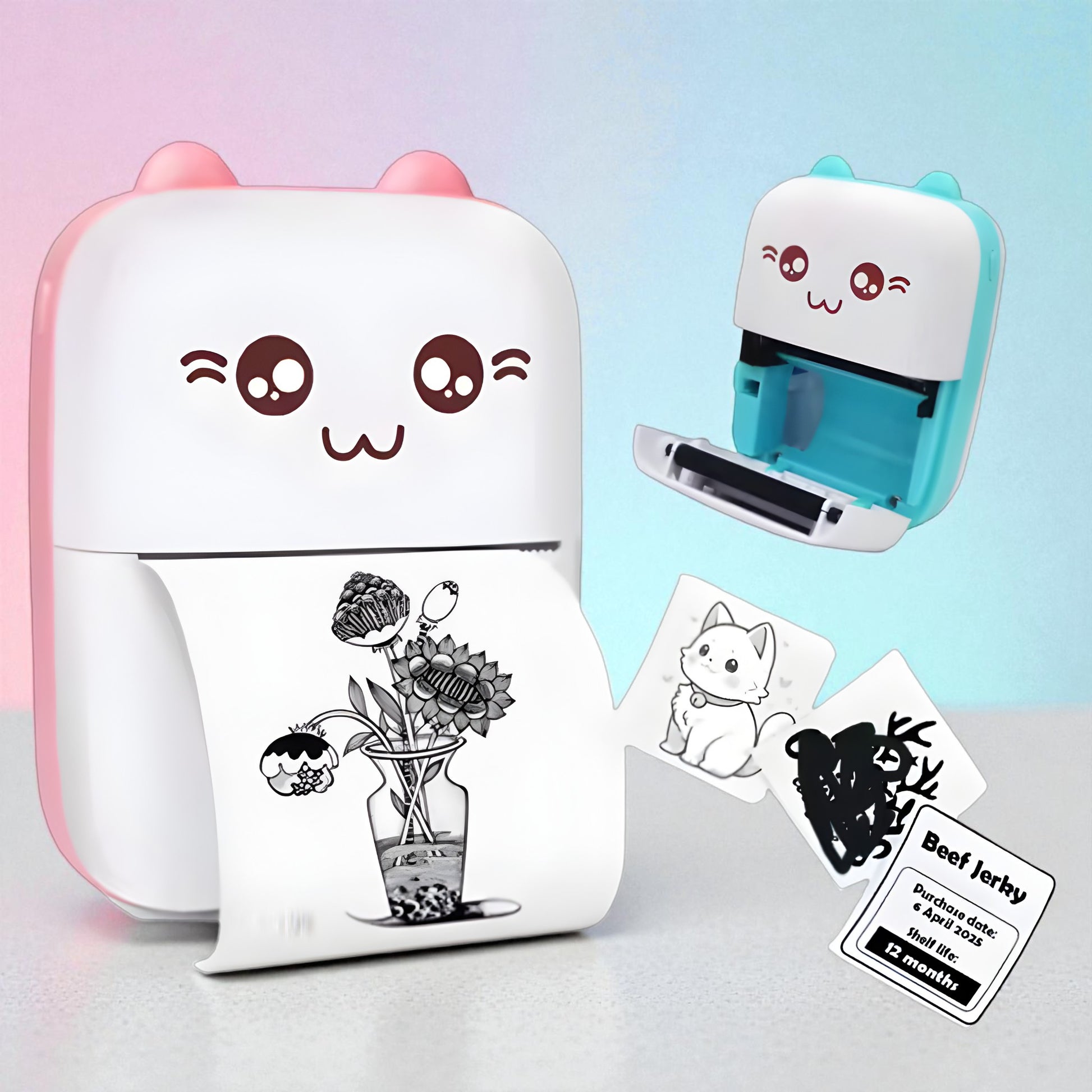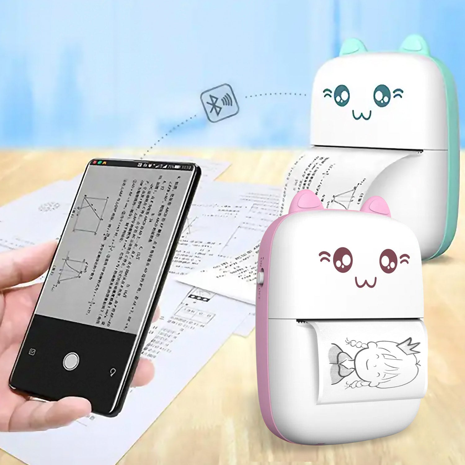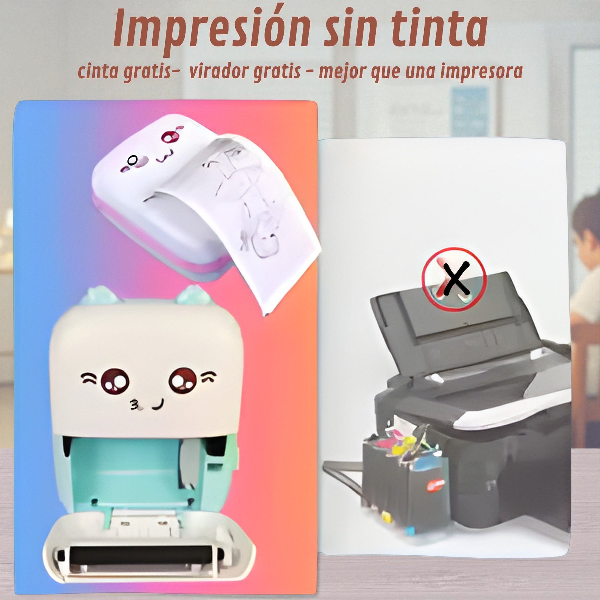 Nuestra mini impresora portátil con forma de gato transforma tus ideas digitales en recuerdos reales, sin tinta y al instante. Perfecta para estudiantes, artistas y amantes de la organización.
